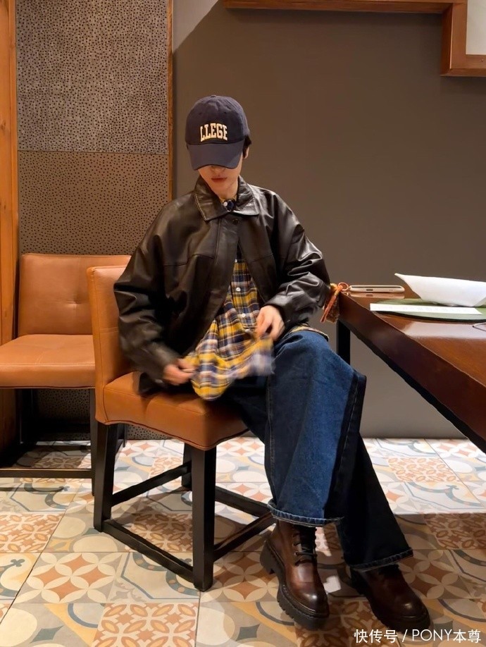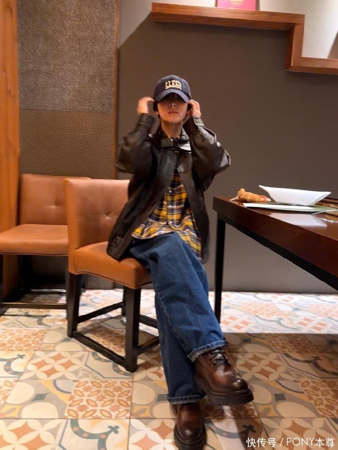 在服装搭配上,宋慧乔此次选择了一套 “又帅又文艺” 的组合,将不同风格的单品融合得恰到好处。上身是设计师品牌黄色格子衫内搭,明亮的黄色格纹打破了秋冬穿搭的沉闷,自带复古文艺气息,宽松的版型既舒适又能藏住身材小瑕疵;外搭一件棕色皮衣外套,皮质柔软却不失挺括,复古的棕色调与黄色格纹形成温暖的色彩呼应,同时为整体造型注入酷飒气场 —— 皮衣的利落与格子衫的文艺碰撞,既不会过于硬朗,也不会显得拖沓,平衡感拿捏得刚刚好。